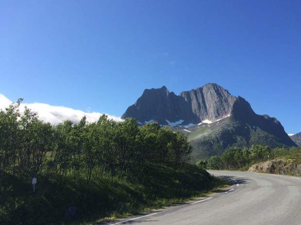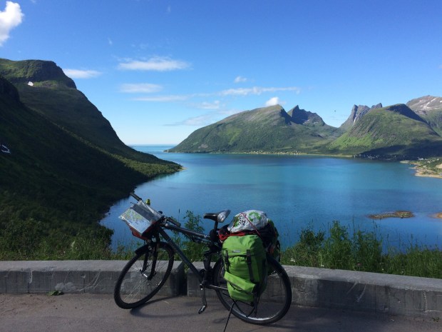 Onto the ferry to Senja, which now has become one of my favourite cycling destinations. It just doesn’t get much better. A different, more spectacular view around each corner, blue skies, white beaches, arctic ocean, high cliffs and impressive mountains.
