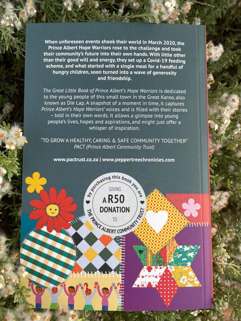 The Great Little Book of Prince Albert’s Hope Warriors is dedicated to the young people of this small town in the Great Karoo, also known as Die Lap. A snapshot of a moment in time, it captures Prince Albert’s Hope Warriors’ voices and is filled with their stories – told in their own words. It allows a glimpse into young people’s lives, hopes and aspirations, and might just offer a whisper of inspiration.