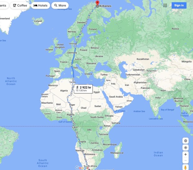 A hybrid Bike’n Hike from Keurbooms to Kirkenes From the southern edge of Africa to the north-eastern corner of Europe Touching the Indian and the Arctic Oceans A literal & literary journey of 16,000 – 18,000 km, approximately With abundant room for real and imaginary detours.